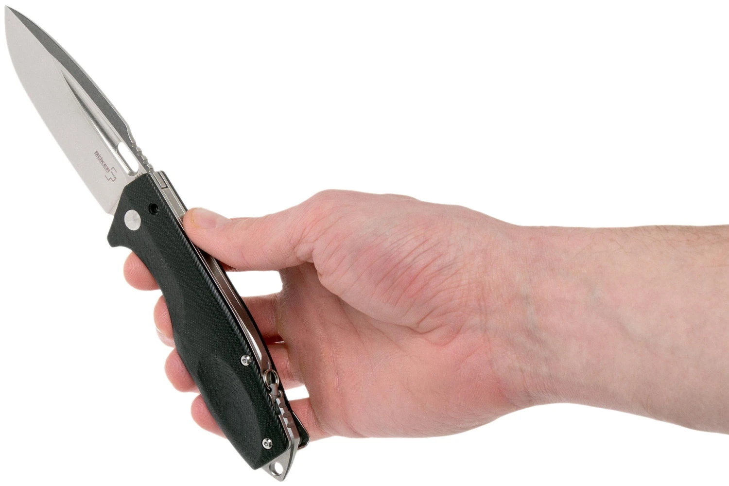 Le Böker Plus Caracal Folder est un couteau de poche robuste conçu par Boris Manesherov. Vous remarquez immédiatement la bonne ergonomie de ce couteau au moment où vous l’avez dans les mains. Le manche en G10 est dilué sur certaines parties. Vos doigts se positionnent encore mieux autour du manche. Cela montre qu’il n’est pas seulement beau, mais aussi conçu pour être utilisé.